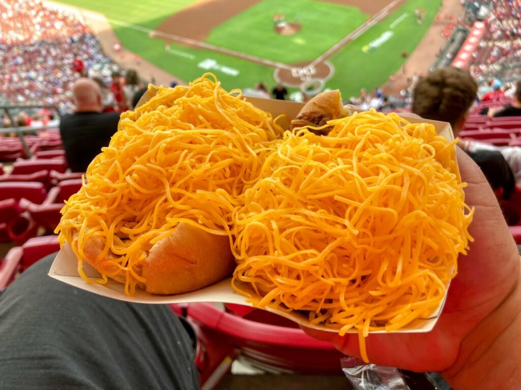 Skyline Chili is all over Ohio and so it is fitting you would also find it at Great American Ball Park. When you do have Skyline Chili, accept that their ‘chili’ is not really chili but more of a ground beef mix. Topped with cheese on top of hot dogs, it makes for a great hot dog option for any ball game.