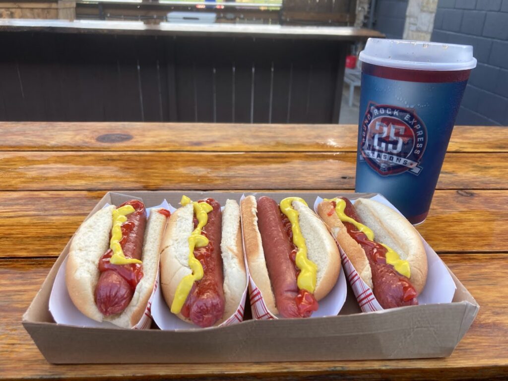 For this game, we chose the rocking chairs in left field to watch the game. The game was delayed an hour because of rain. Dollar Dog Night at any ballpark is always a bonus and the ones at Dell Diamond did not disappoint.