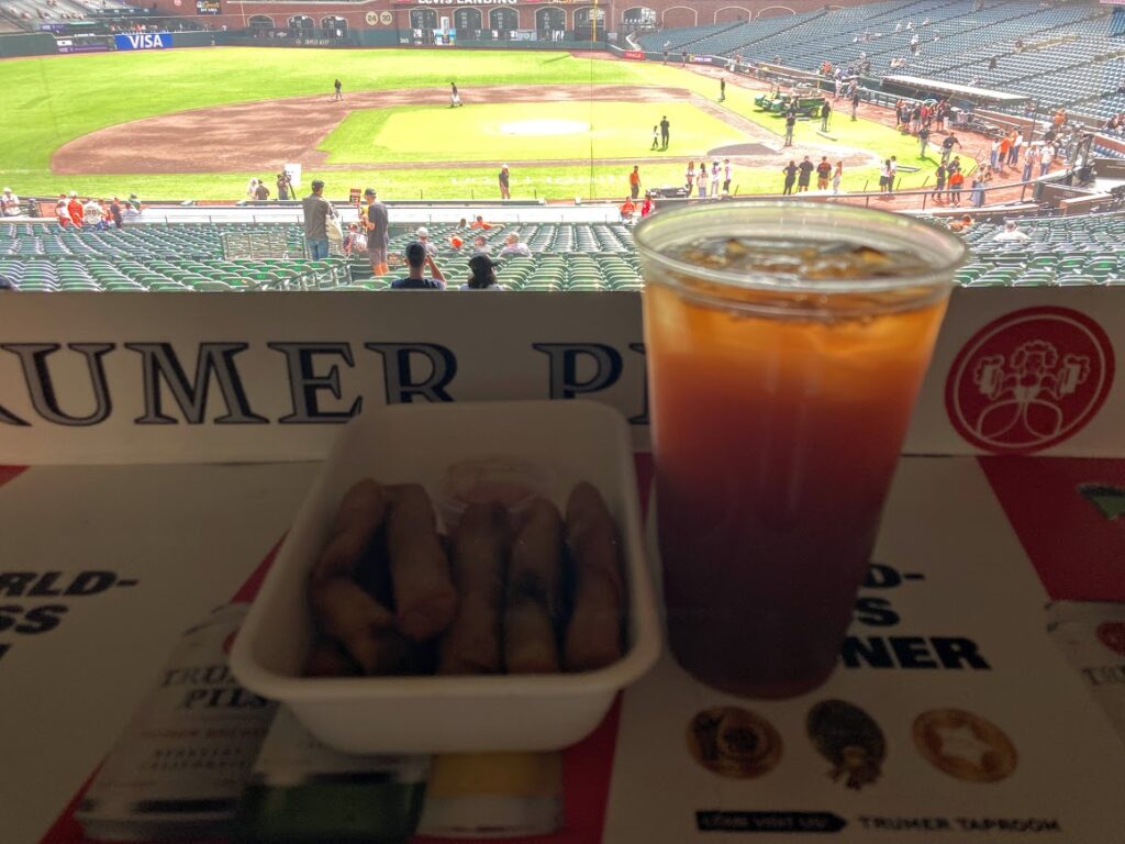 However, I keep going back to the Lumpia and Filipino Lemonade. Only Oracle Park serves the lumpia eggrolls so that alone makes it a uniquely Oracle Park food choice. Plus, the lumpia is really good.